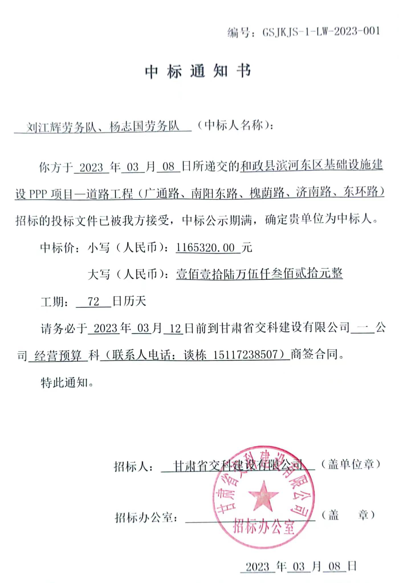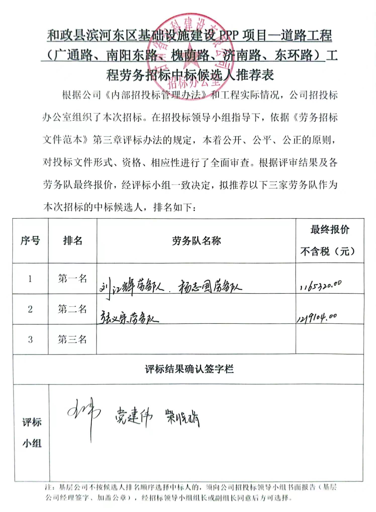 和政县滨河东区基础设施建设PPP项目—道路工程(广通路、南阳东路、槐荫路、济南路、东环路)中标候选人及中标通知书